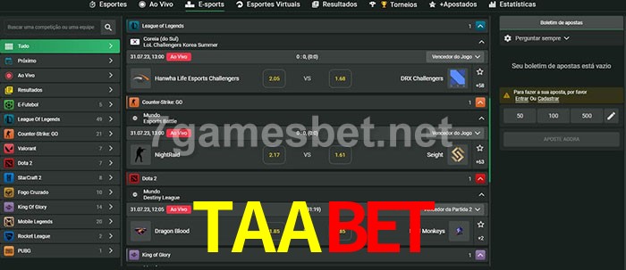 O TAAbet oferece uma grande seleção de opções de apostas em e-sports com probabilidades competitivas